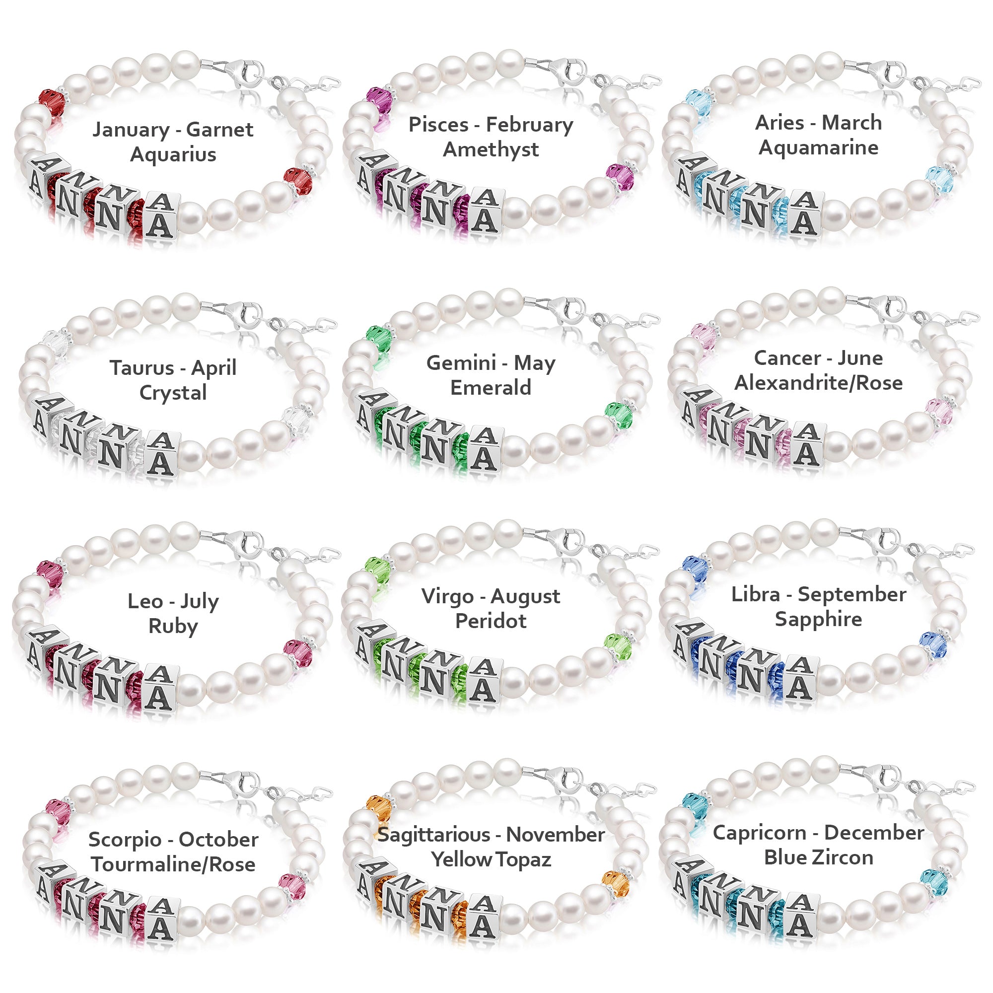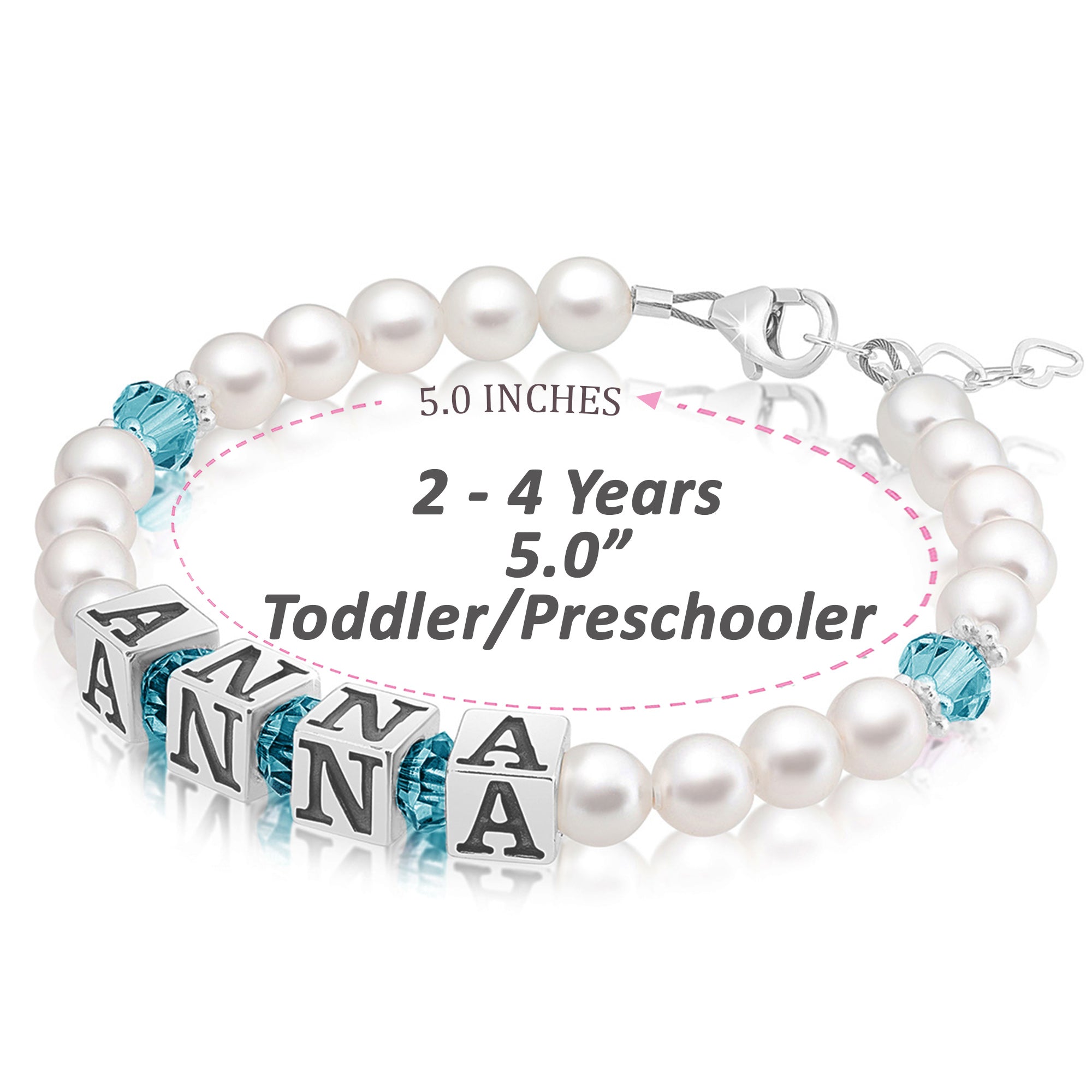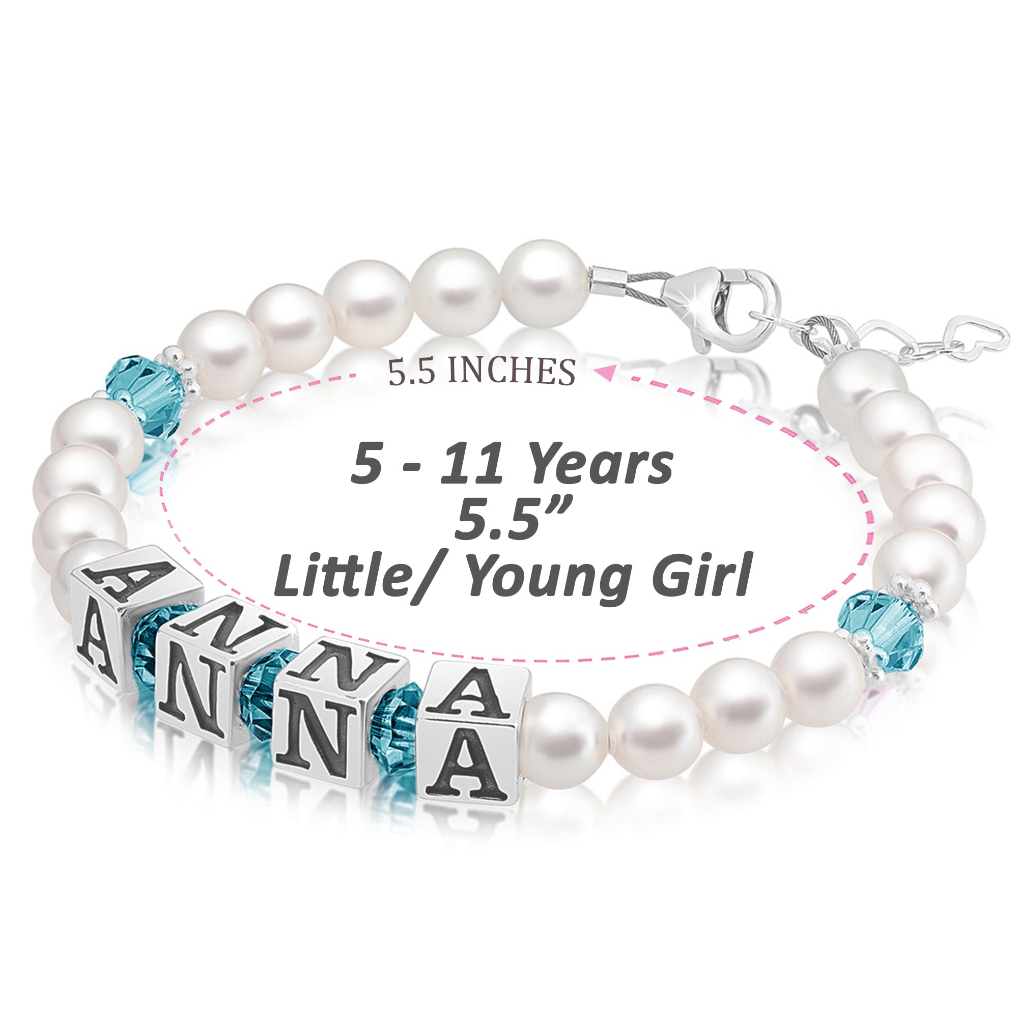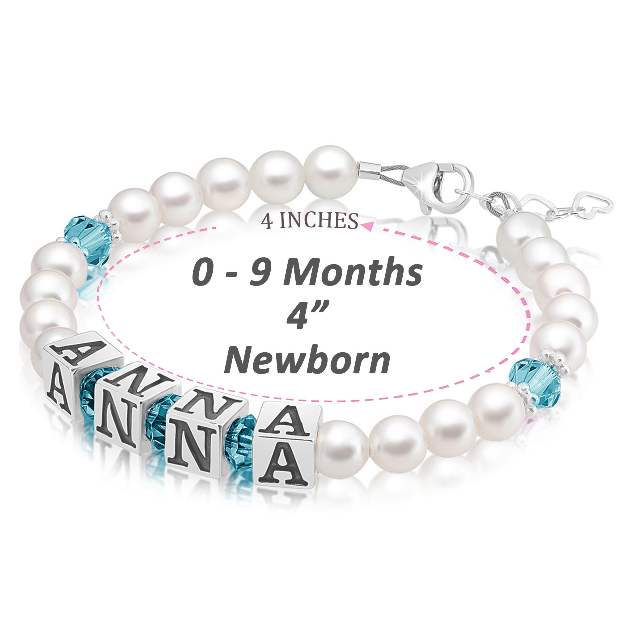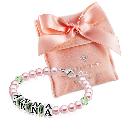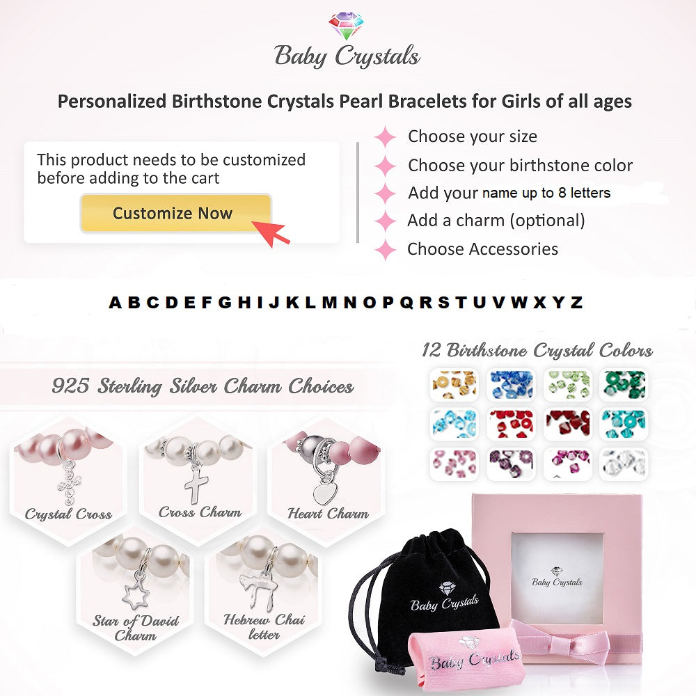 Baby Crystals Personalized Pearl Bracelet for Infant Girls - Baby Jewelry - Birthstone Bracelets with Name - Custom Name Bracelet for Women- Baptism Gifts -Teen Girl Gifts - Silver Jewelry Charm