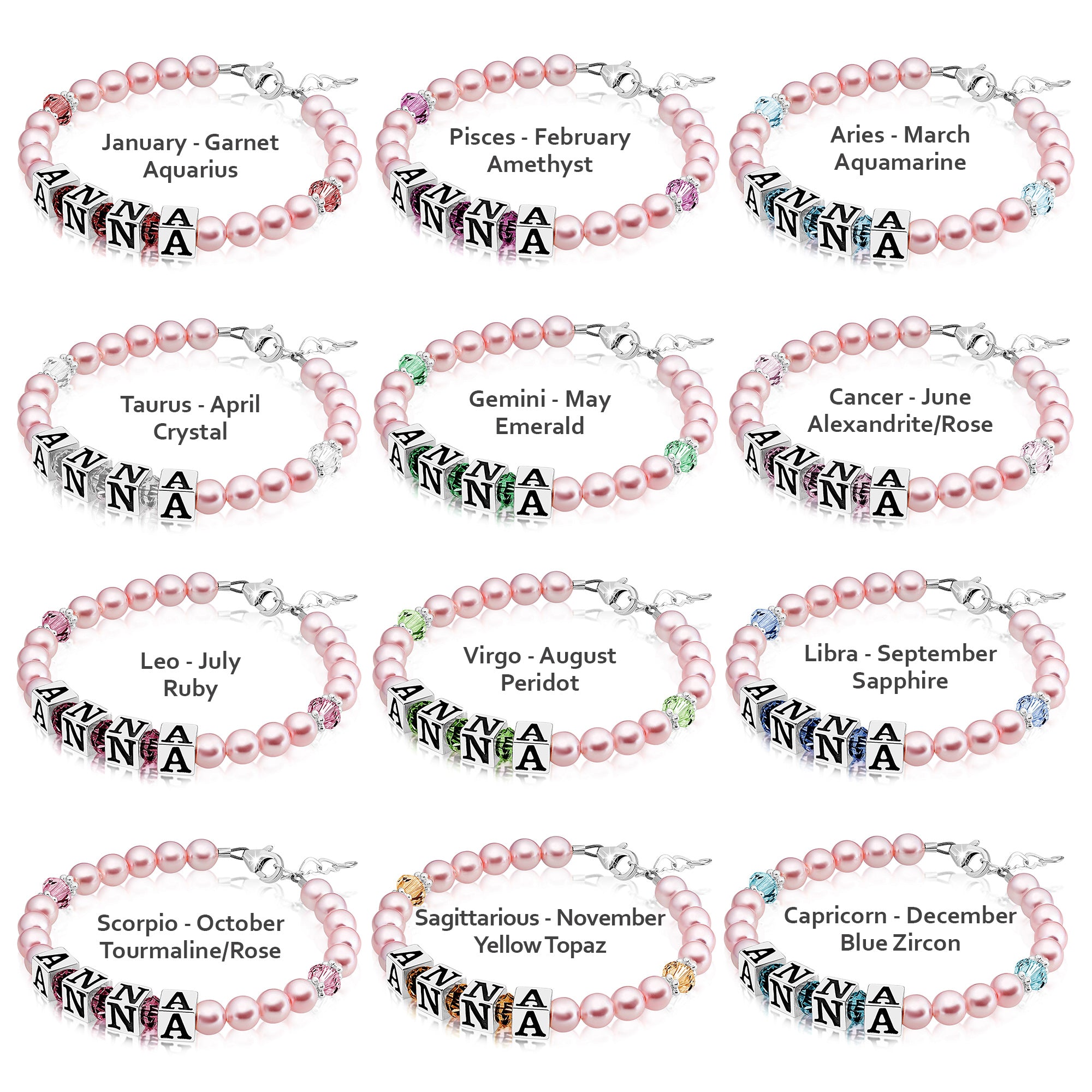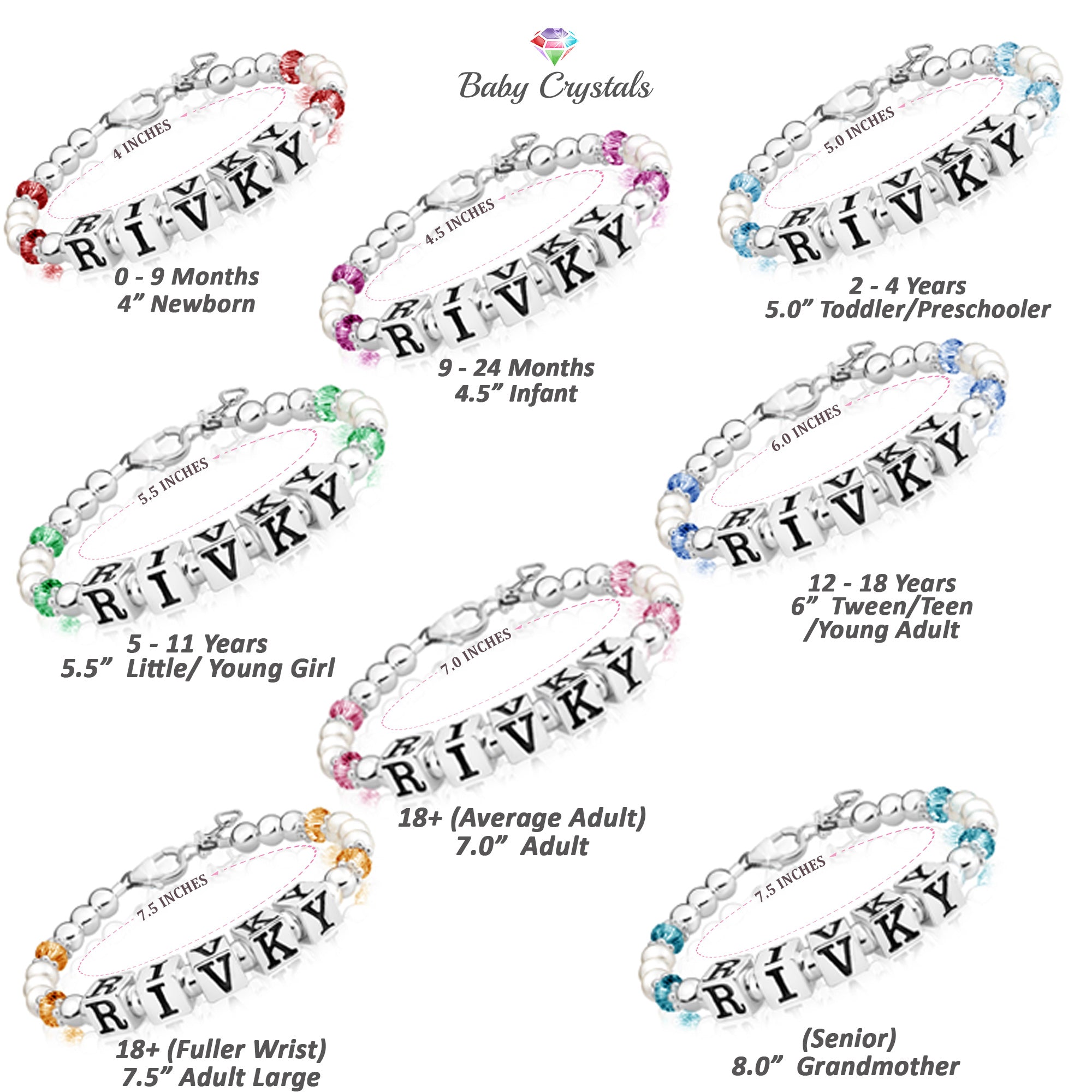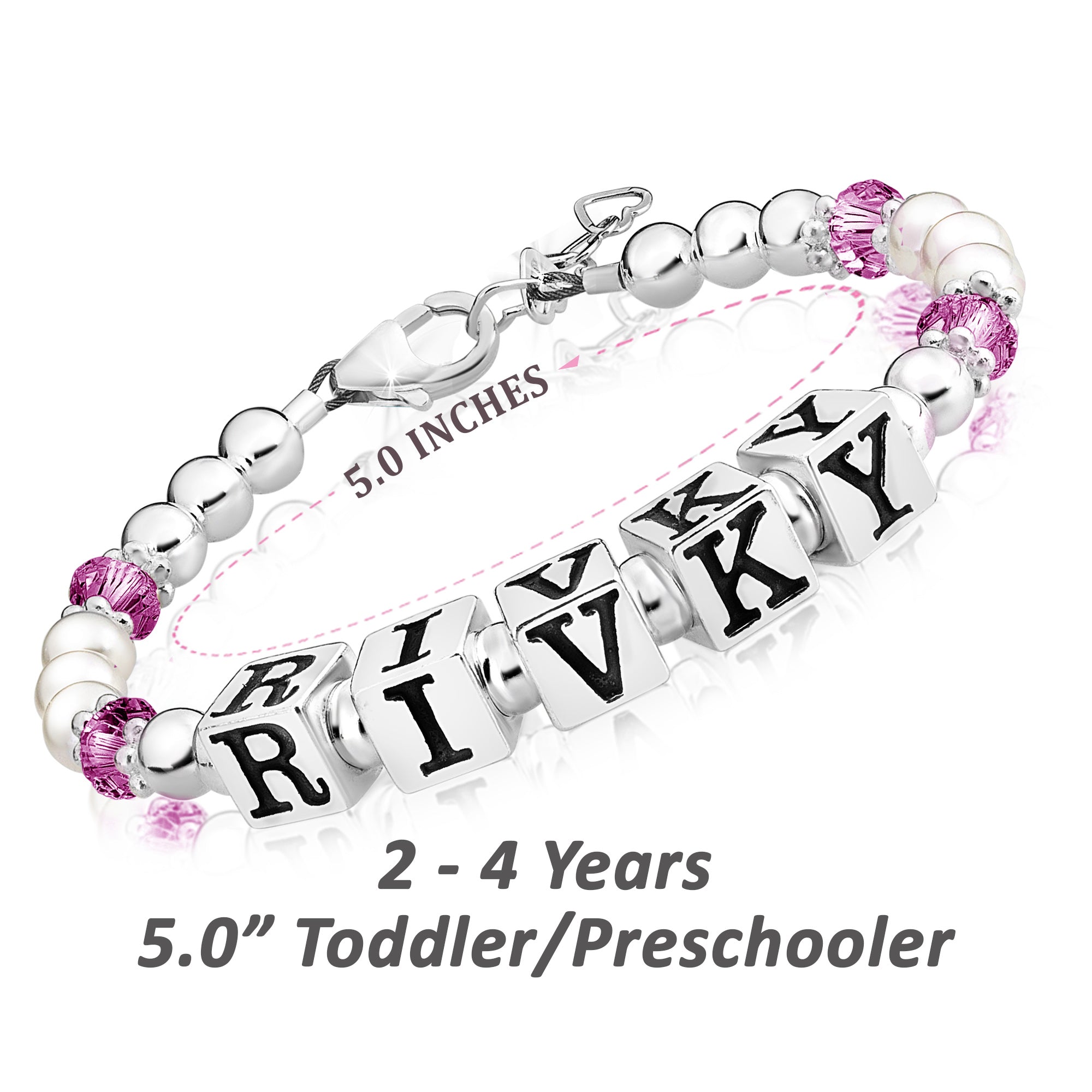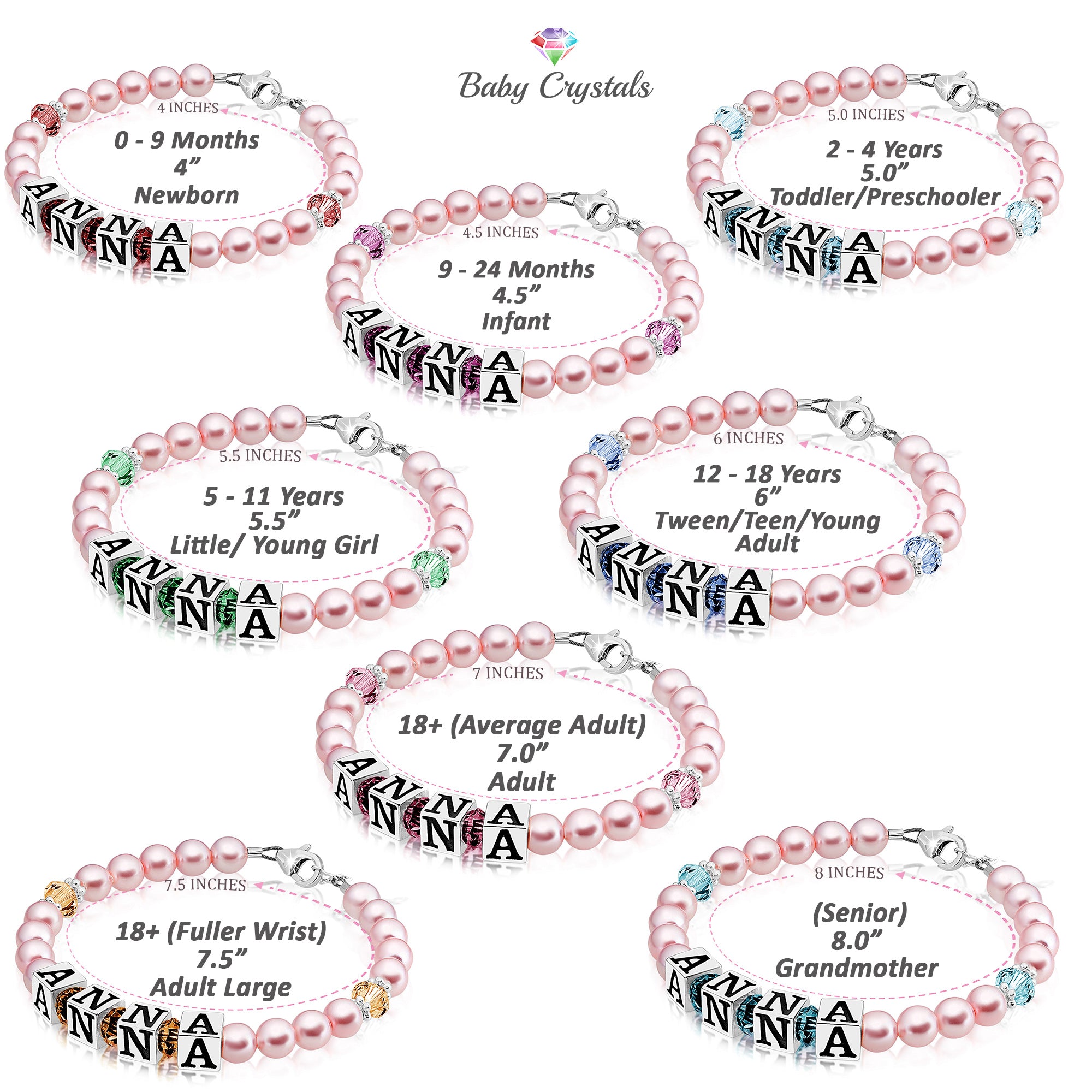 Baby Crystals Personalized Pearl Bracelet for Infant Girls - Baby Jewelry - Birthstone Bracelets with Name - Custom Name Bracelet for Women- Baptism Gifts -Teen Girl Gifts - Silver Jewelry Charm