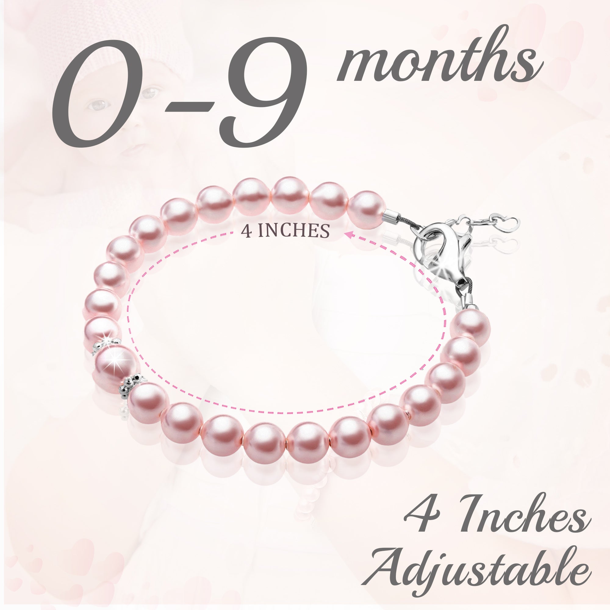 NewBorn Baby Girl Elegant Bracelet with Pink Pearls
