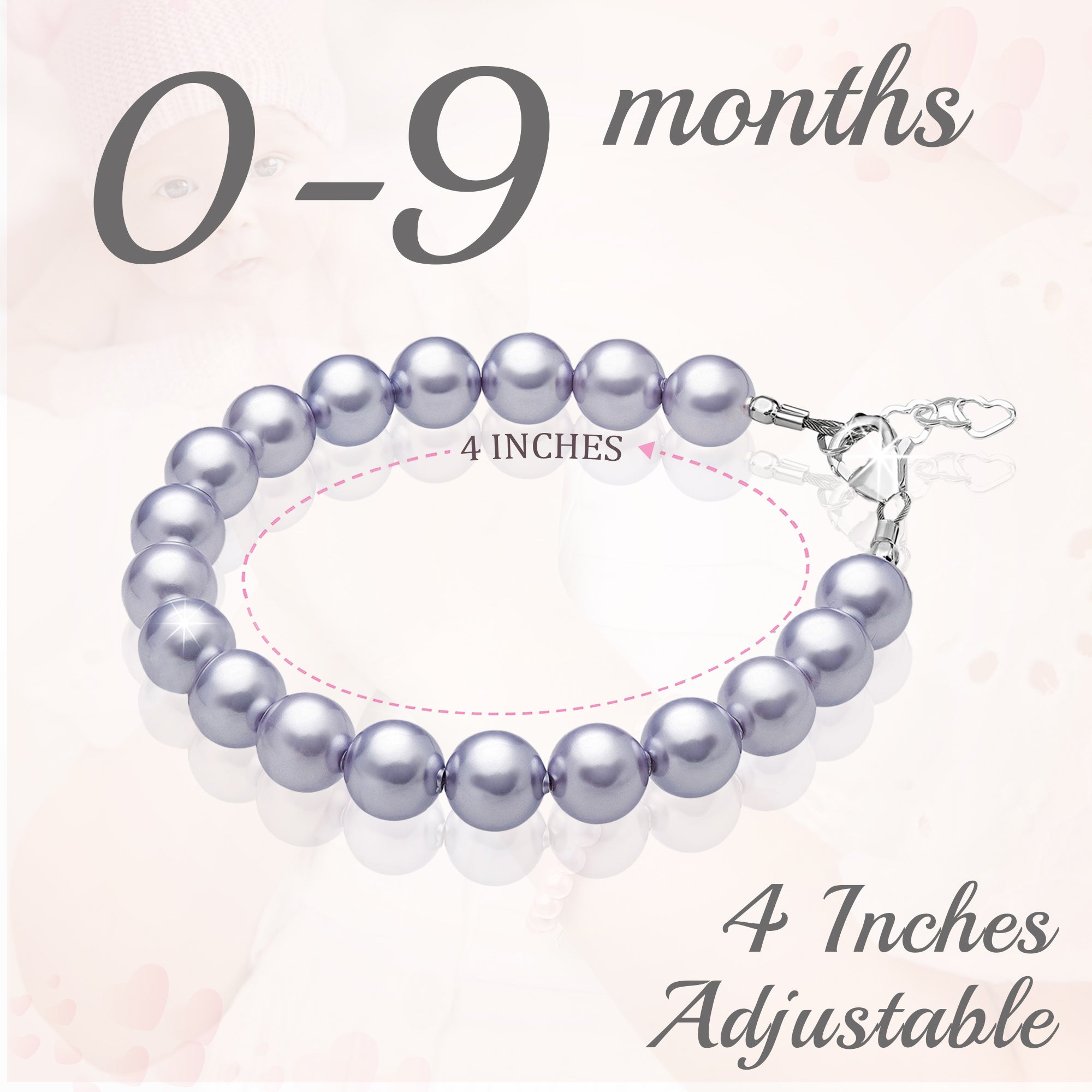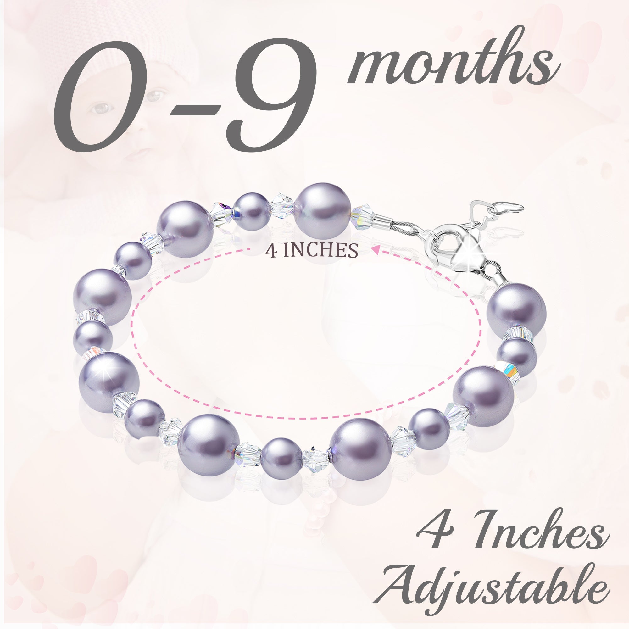 NewBorn Baby Girl Elegant Bracelet with Lavender Pearls