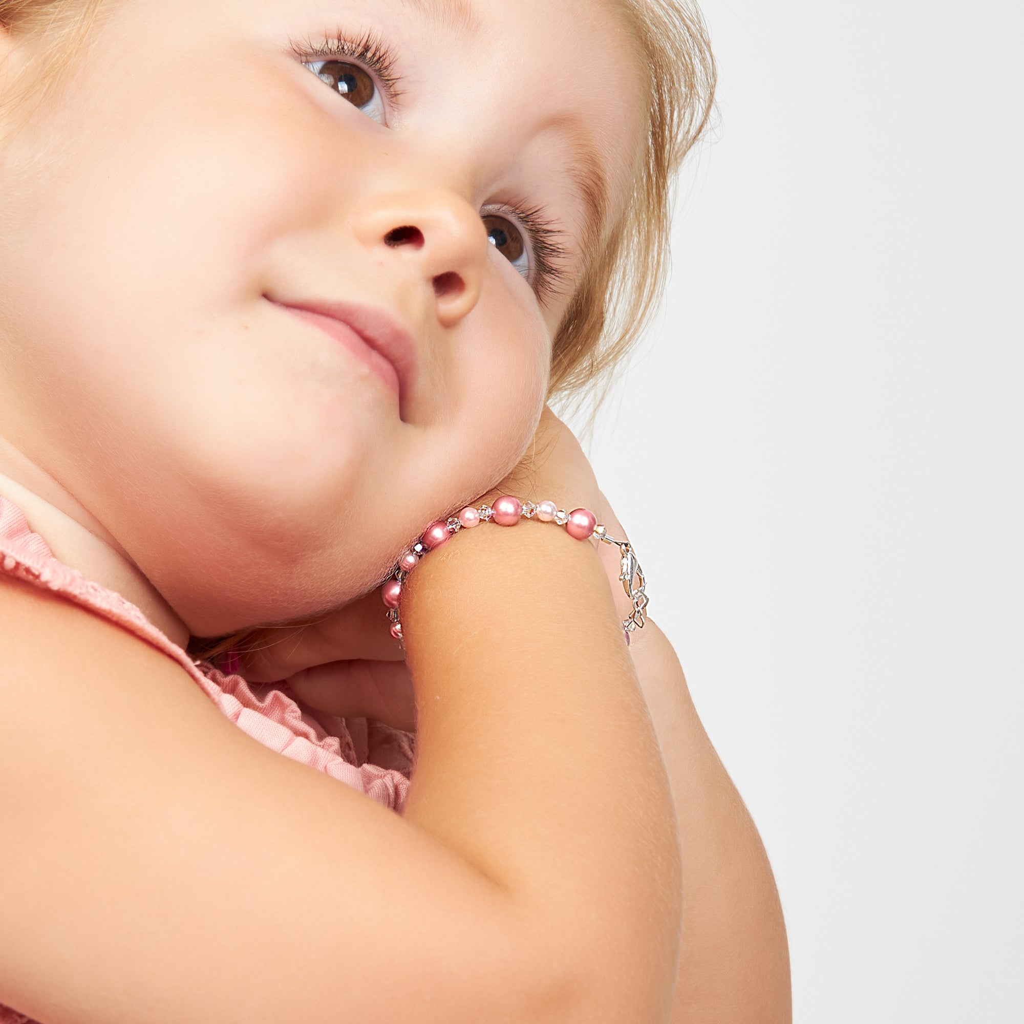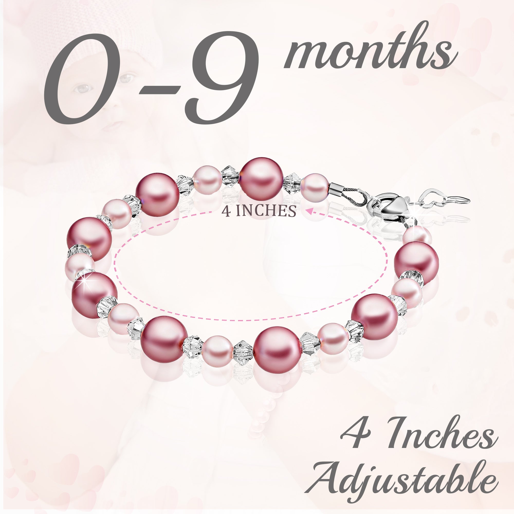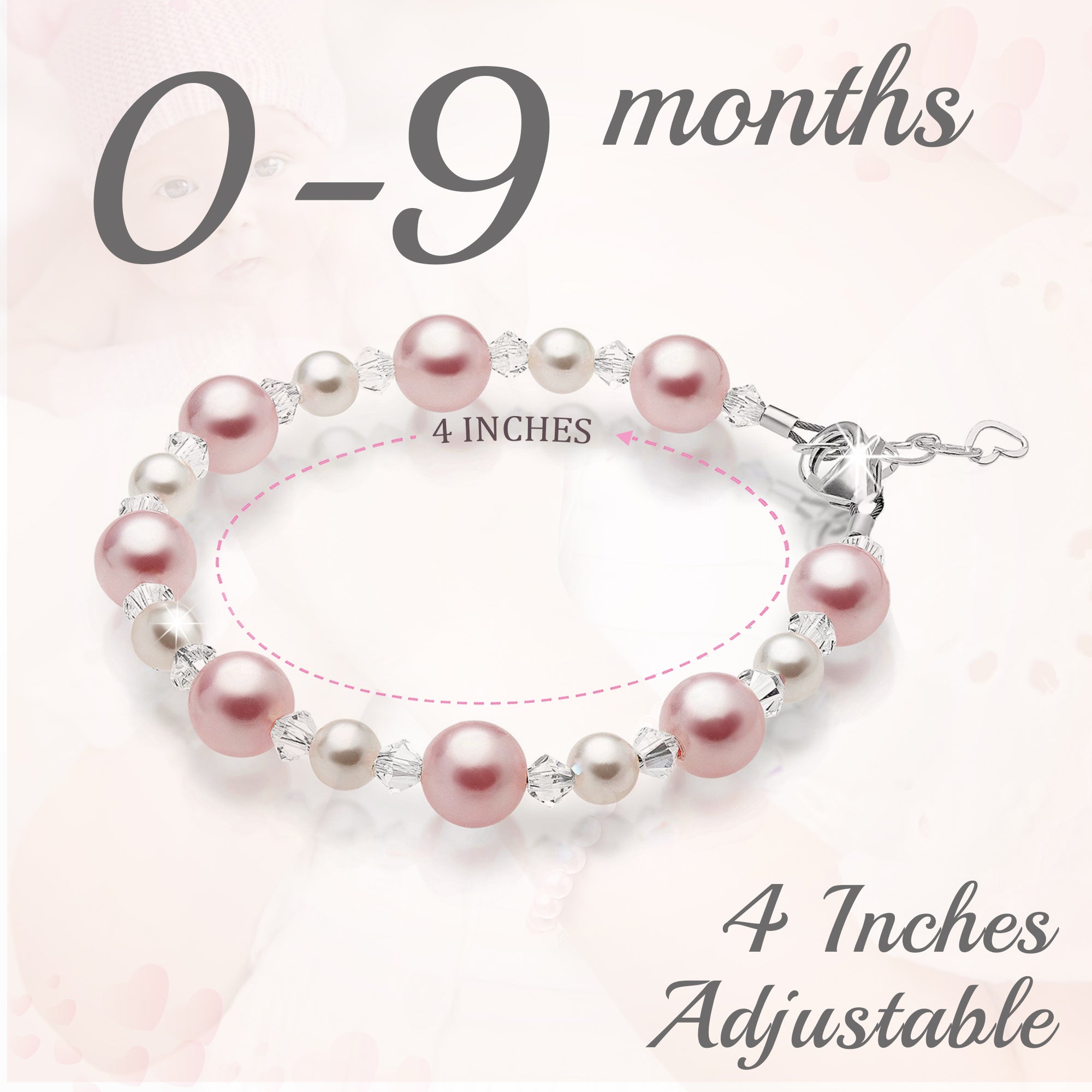NewBorn Baby Girl Bracelet with Rose & Pink Pearls & Clear Crystals