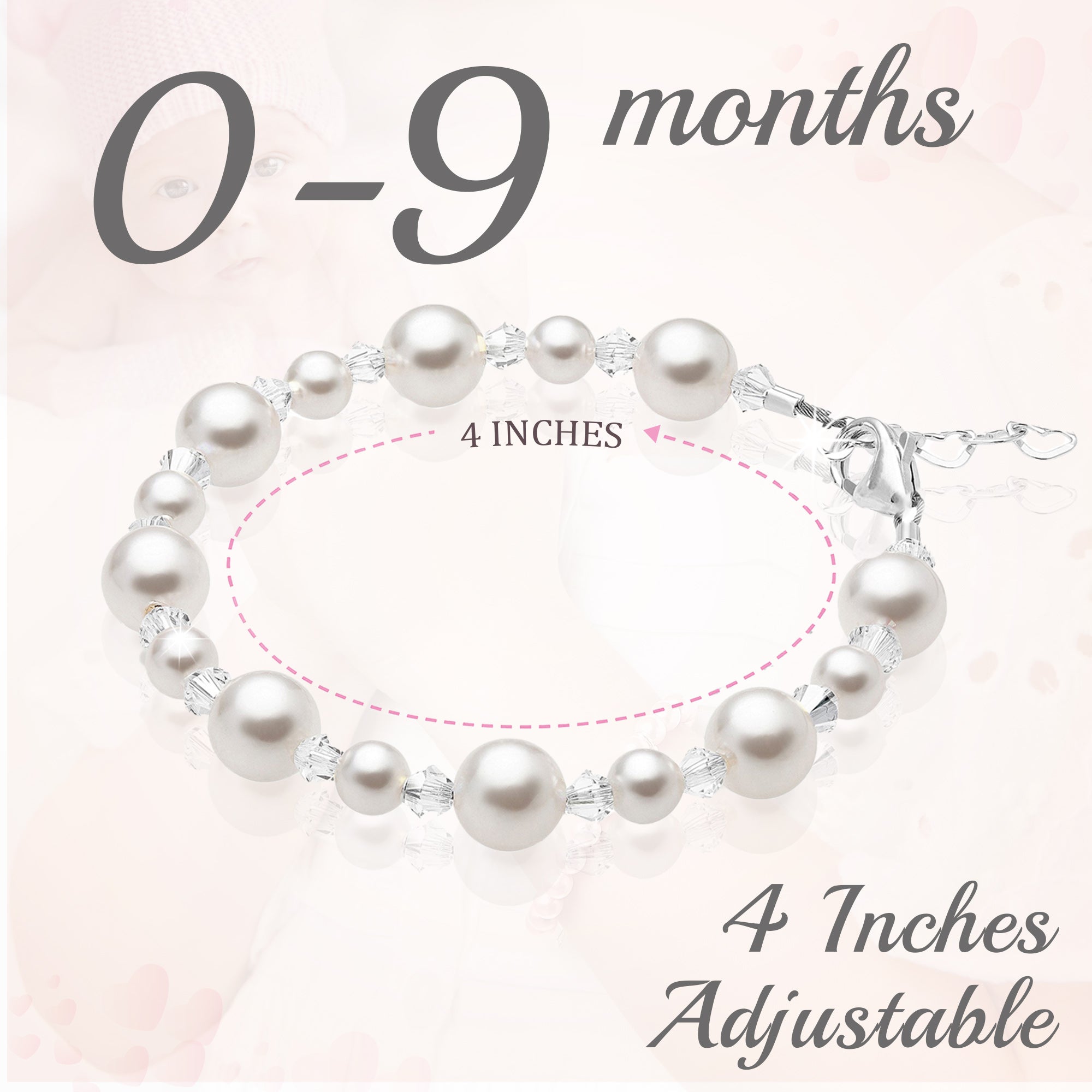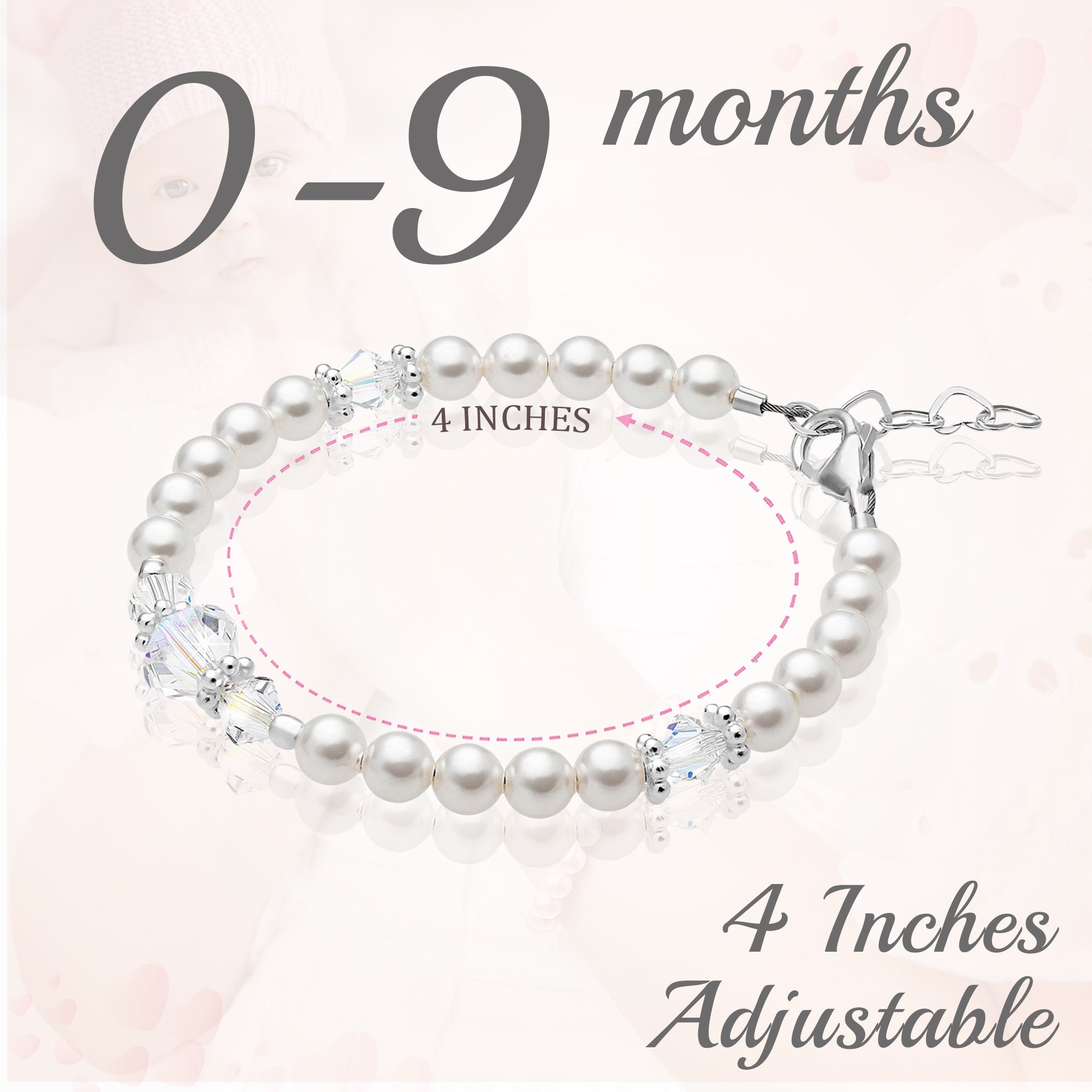 NewBorn Baby Girl Bracelet with Pink & White Pearls & Clear Crystals