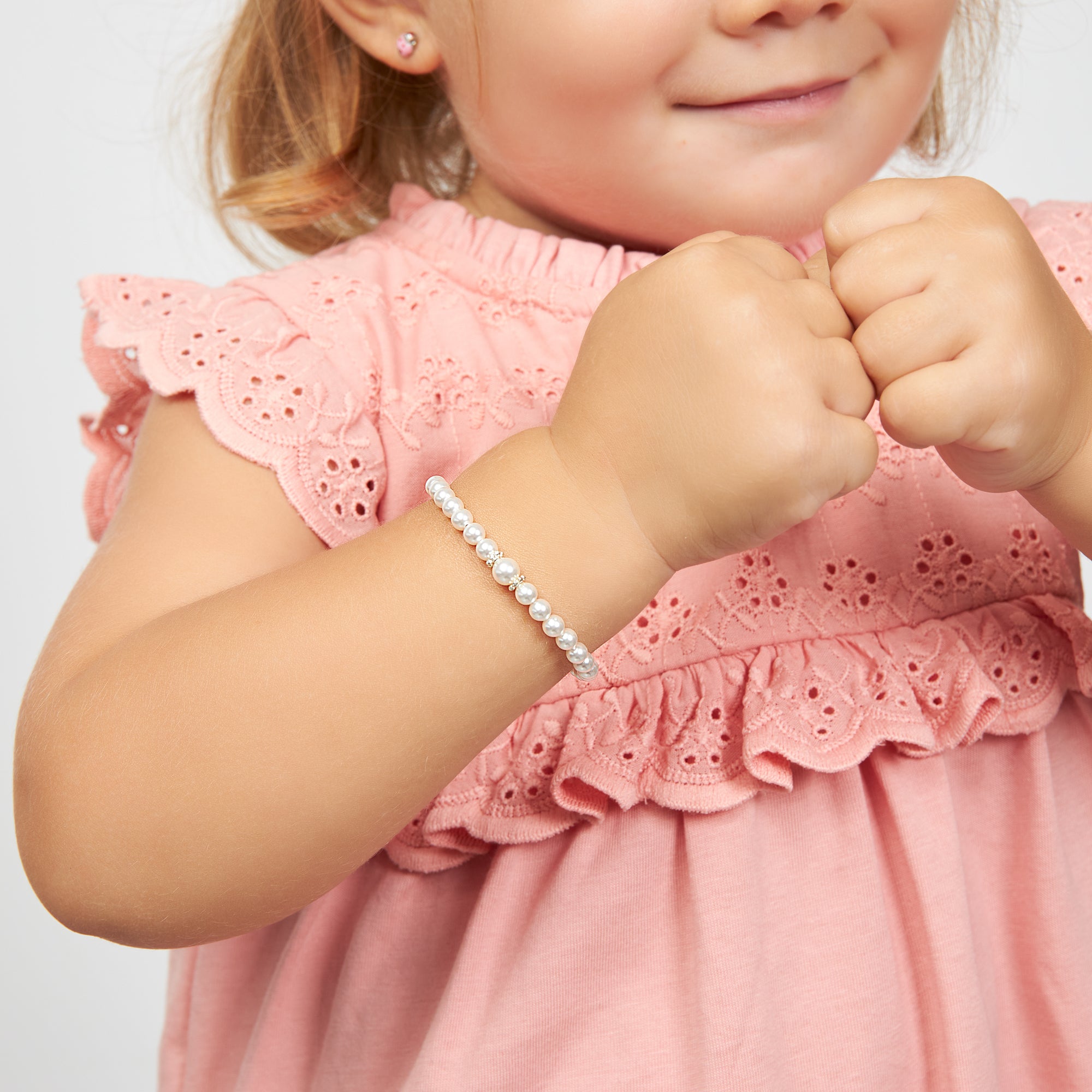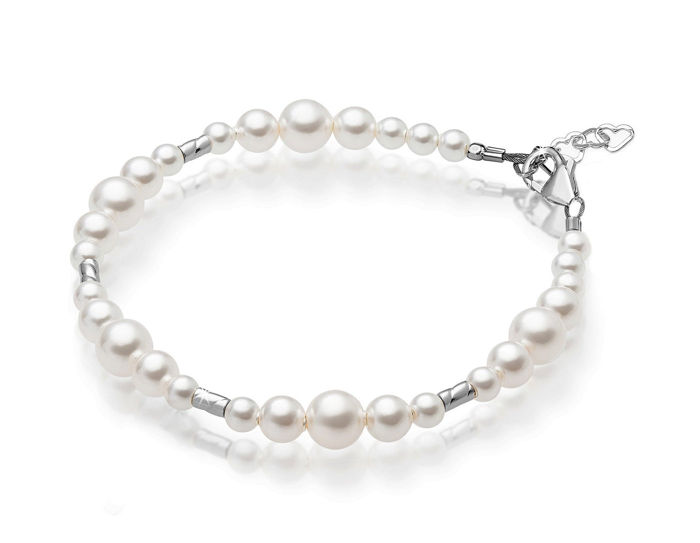 NewBorn Baby Girl Bracelet with White Pearl & Silver Crimps