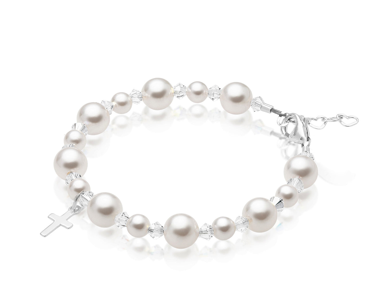 NewBorn Baby Baptism & Christening White Pearl Sterling silver Cross Charm Bracelet