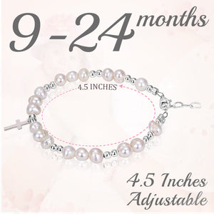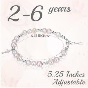 Beaded Bracelets for Girls, Sterling Silver Charm Cross Bracelet Cultured freshwater Pearl, Toddler Baby Girl, Christening, Communion, Baptism Gifts for Girl